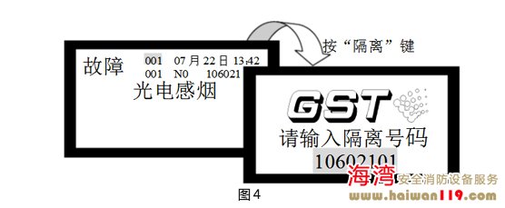 當(dāng)外部設(shè)備(探測器、模塊或火災(zāi)顯示盤)發(fā)生故障時,可將它隔離掉,待修理或更換后,再利用取消隔離功能將設(shè)備恢復(fù)。