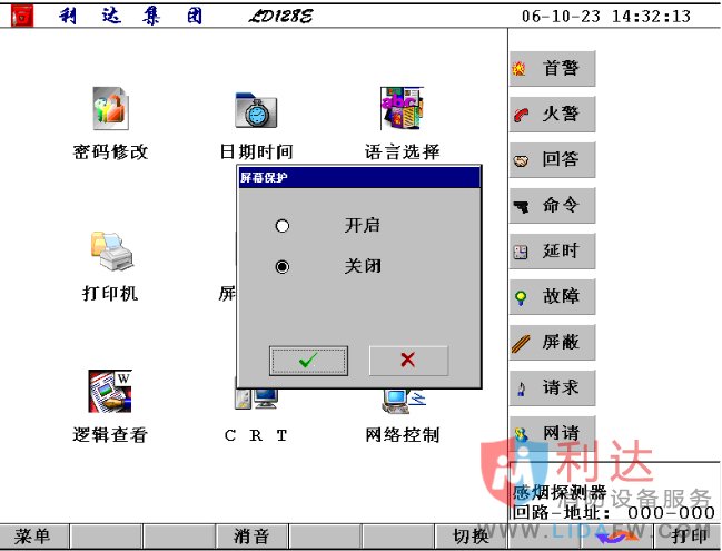 利達(dá)LD128EII消防主機屏幕保護設(shè)置