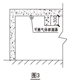 2.當(dāng)可燃?xì)怏w探測器在屋頂安裝時(shí),應(yīng)裝于有燃?xì)庠O(shè)備的梁的一側(cè),見圖2。