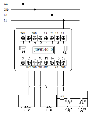 L1(端子1、端子2)、L2(端子3、端子4):接通回路總線,無(wú)極性;